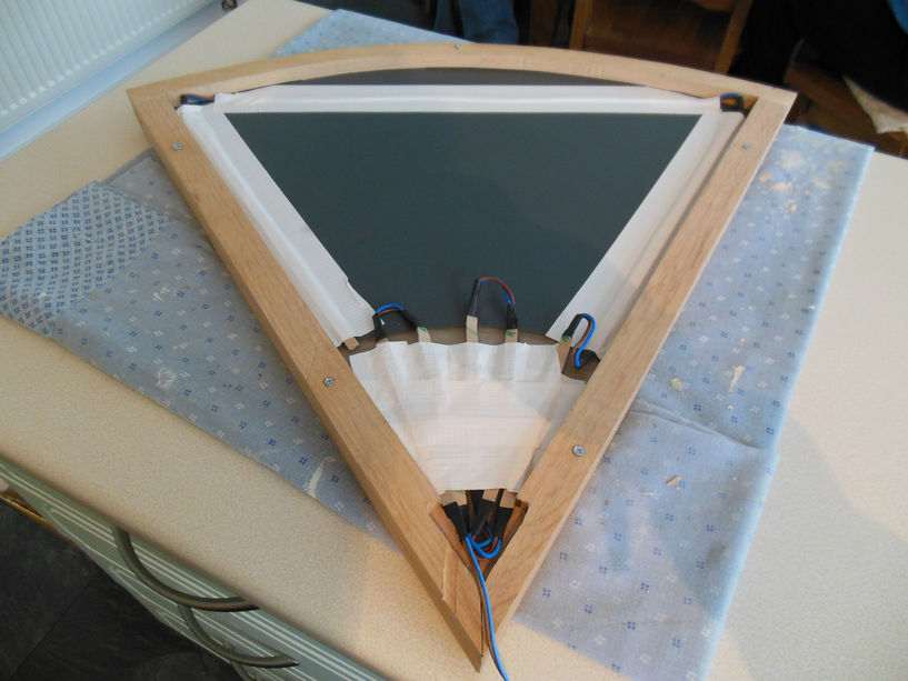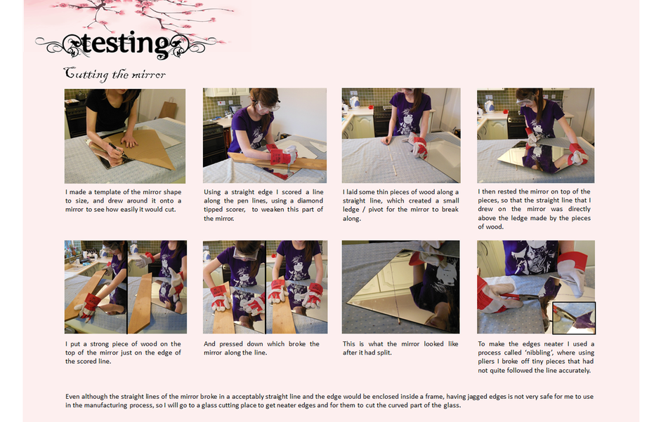 After not being able to snap the mirror perfectly to shape I took it to a glass cutter to get a neater fan shape.