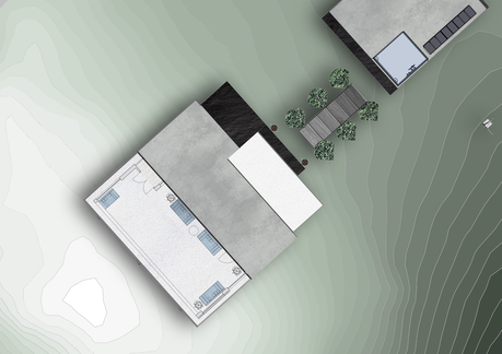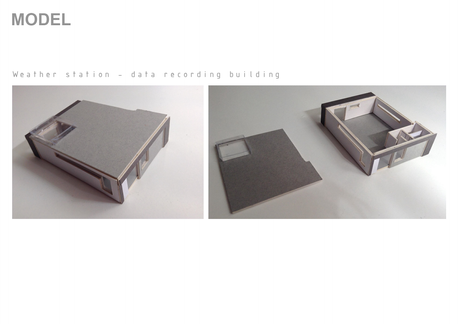 I created two separate buildings, one the weather station for the researchers and professionals, and the other a building where public can experience different weather conditions as they walk around, then relax in the warm cafe as they watch the rainfall temporarily change the shape of the PTFE roof.